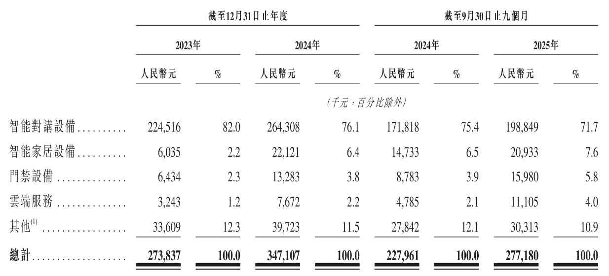 值得注意的是,睿云联创在经调整净利润方面也表现出色。2023年和2024年,公司经调整净利润分别为4615万元和6175万元。到了2025年前9个月,经调整净利润已达到5561万元,进一步证明了公司的盈利能力和财务健康状况。截至2025年9月30日,睿云联创智慧社区解决方案的全球累计销量已接近200万台,显示出市场对其产品和服务的高度认可。