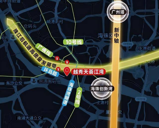 交通配套的兑现进一步夯实了项目价值。地铁10号线大干围站已开通,2号线南洲站、广佛线石溪站环绕,形成三地铁网络。2025年11月通车的海珠湾隧道将中心城区至广州南站的车程缩短至15分钟,其所属的广南快速路强化了广州国际综合交通枢纽地位。全长42.2公里的环岛路建设取得突破,2026年1月石岗路—大干围段临时路开通,预计年底主路贯通后,将全面激活后航道滨江价值。