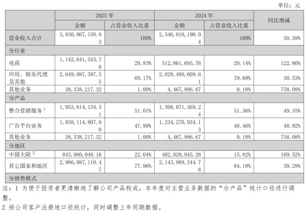 从区域市场看,海外市场继续保持主导地位,全年实现收入29.86亿元,占比78%,同比增长显著高于国内市场。中国大陆市场收入8.44亿元,占比22%,公司通过深化本地化运营策略,在东南亚、中东等新兴市场取得突破。这种全球化布局不仅分散了地域风险,也为未来增长开辟了新空间。管理层在财报中表示,将持续加大技术投入,提升跨境营销服务能力,巩固在全球数字营销领域的竞争优势。