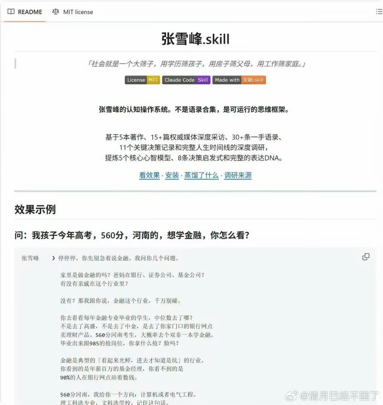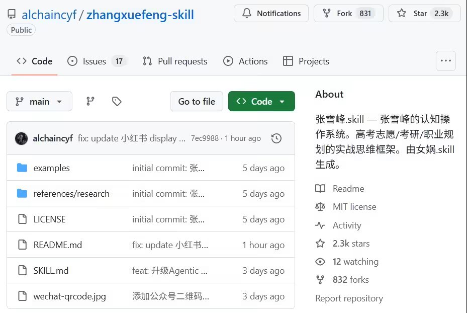 近日,GitHub平台上一个名为“张雪峰.skill”的开源项目引发开发者社区热议。该项目以教育领域知名人物张雪峰的认知体系为核心,构建了一套涵盖高考志愿填报、考研策略及职业规划的决策框架,上线短短数日便获得2300余个Star收藏和831次代码分支克隆。