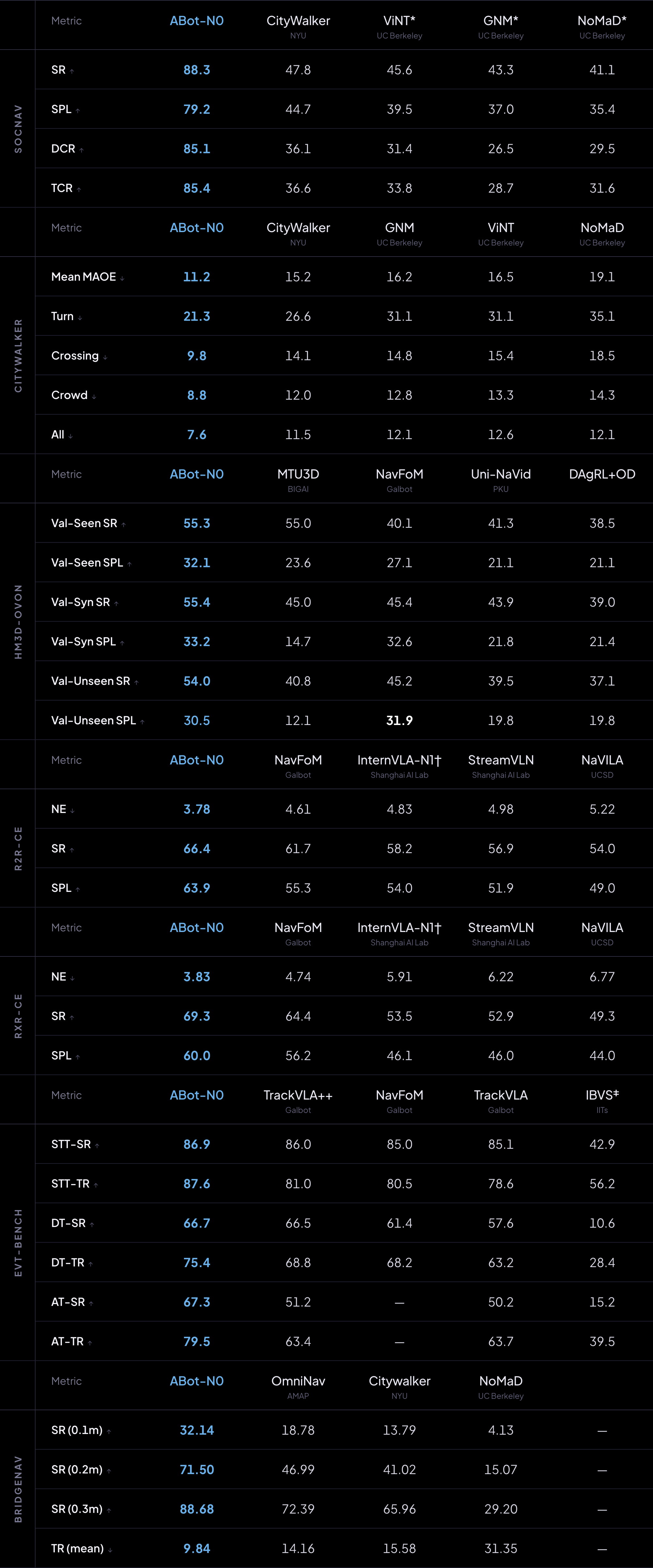 在模型层,ABot-N导航模型实现了五大核心导航任务的统一架构,通过层级式“大脑-动作”协同机制,在VLN-CE、HM3D-OVON等7项权威基准测试中刷新纪录。其独创的意图理解模块可使机器人准确识别用户需求,在复杂社会场景中保持合规导航。ABot-M操作模型则通过动作流形学习技术,将动作生成稳定性提升40%,支持从工业机械臂到家务机器人的跨形态适配,在LIBERO、RoboCasa等评测中展现显著优势。