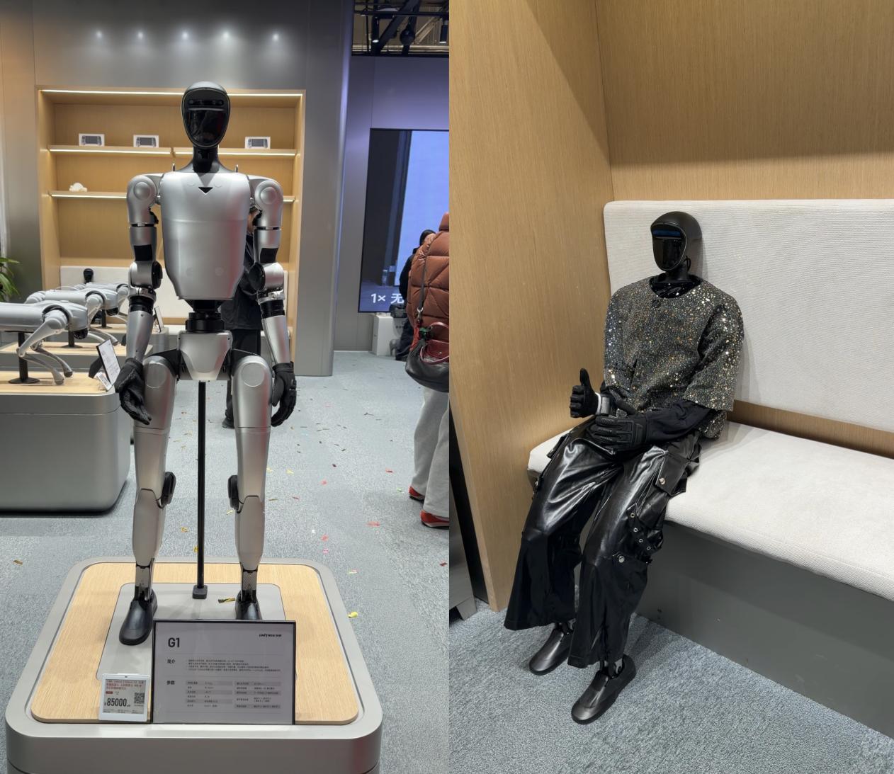 值得一提的是,前段时间在歌手王力宏演唱会上大放异彩的同款宇树科技机器人也亮相门店。在那场演唱会上,这款机器人舞蹈姿势灵活流畅,还表演了高难度的韦伯斯特空翻,其精彩表现引发热议。特斯拉创始人埃隆·马斯克转发该舞蹈视频并留言点赞“Impressive”(令人印象深刻),这无疑是对宇树科技机器人技术的高度认可。