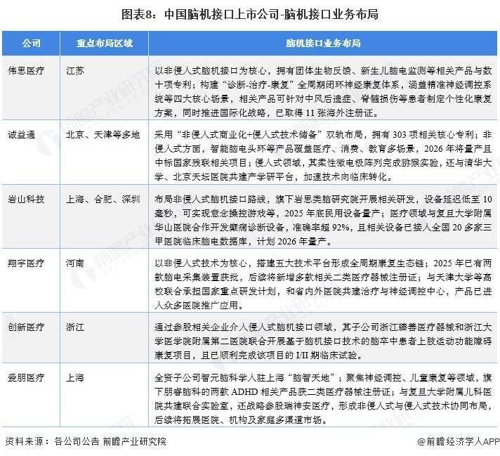 脑机接口技术作为连接人脑与外部设备的创新桥梁,正加速推动医疗、智能设备、虚拟现实等领域的变革。据前瞻产业研究院脑机接口研究小组统计,目前我国已有十余家相关企业登陆资本市场,形成覆盖产业链上下游的完整生态。其中,北京、江苏、浙江、上海成为企业集聚的核心区域,仅北京市就聚集了诚益通、三博脑科等多家行业龙头。