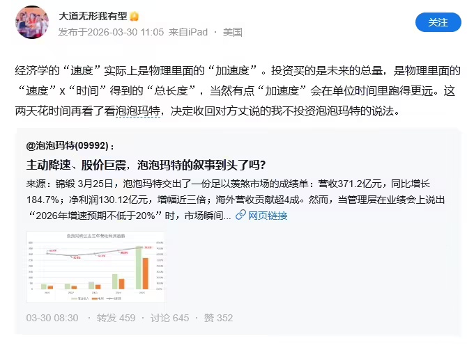 回顾投资理念的变化,段永平透露自己曾对泡泡玛特持保留态度。在2025年12月与王石的对话中,他明确表示虽然认可企业将情绪价值转化为商业价值的创新能力,但因不理解其核心逻辑而选择不投资。这种谨慎态度在2026年3月发生转变,当时他在社交媒体发文称,经过深入调研后决定修正此前观点。
