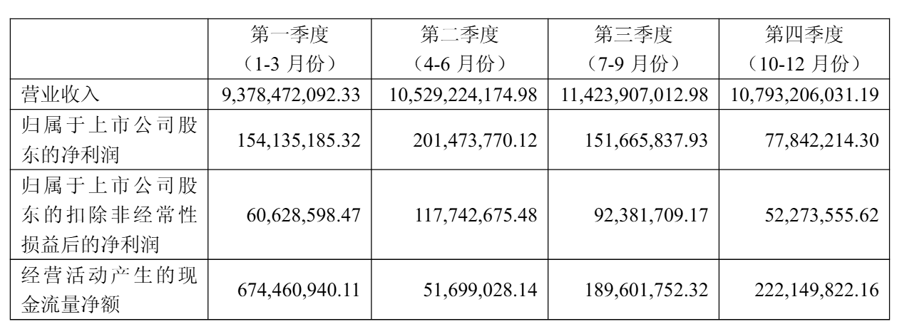 分季度来看,第四季度表现成为全年业绩的关键节点。该季度公司营收107.93亿元,净利润7784万元,扣非后净利润5227万元。尽管单季营收规模保持稳定,但利润端承压明显,尤其是扣非净利润环比下滑,显示出成本控制与运营效率面临挑战。