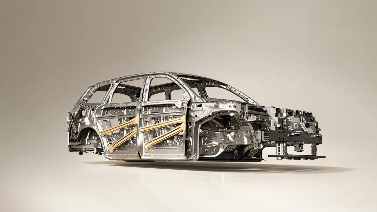 车身安全设计方面,华境S采用"6人全员守护"理念,通过百余项专利技术构建起多层次防护体系。研发团队将二十余年的技术积淀转化为创新实践,其车身结构专利不仅应用于量产车型,更反哺至C-NCAP安全标准的制定过程。车辆前部吸能区采用铝合金与高强钢复合结构,经过上千次仿真优化确保能量高效吸收;乘员舱则应用行业首发的1500MPa一体化热成型前地板骨架,配合1500MPa一体式热成型门环与2000MPa超高强钢侧门防撞梁,使整车高强度钢占比突破85%。