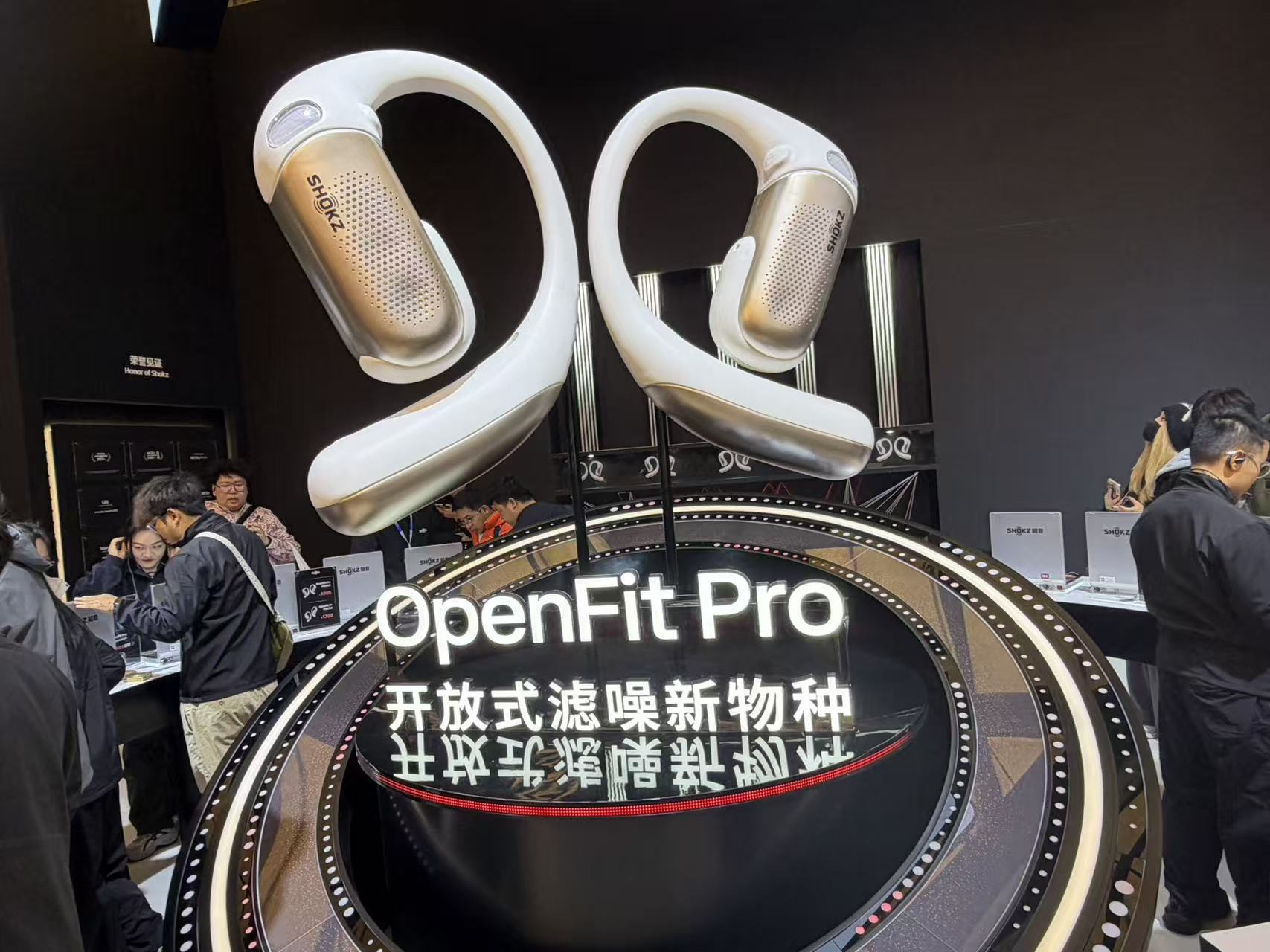 此次展会最受瞩目的当属开放式滤噪耳机OpenFit Pro的国内首秀。这款在CES国际消费电子展上斩获多项大奖的产品,首次实现了“开放架构下的主动降噪”。通过多麦克风阵列与动态滤噪算法的协同,OpenFit Pro在保持耳道开放、确保环境感知安全的同时,可智能识别并削弱办公室空调低频噪音、咖啡厅设备运转声等复杂场景噪声。其搭载的韶音天篱滤噪技术,成功破解了“开放不降噪、降噪不开放”的行业难题,让用户在享受自然听感的同时获得专注聆听体验。