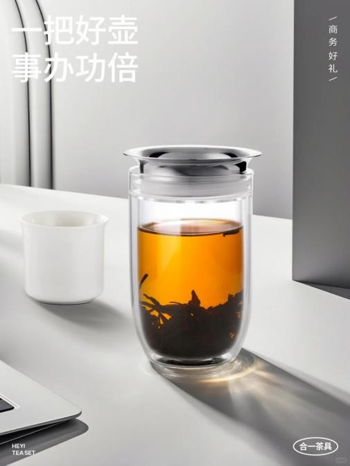 然而,传统茶具的某些特性却与年轻人的生活节奏格格相符。烫手的壶身、难清的茶垢、复杂的操作,都成为入门的高门槛。合一壶的双层高硼硅玻璃壶身解决了烫手问题,表面光滑易洁的设计让清洗变得轻松,单手持壶的倒茶体验更是考虑了现代人的使用习惯。
