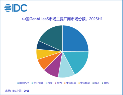 AI IaaS,是指以GPU等AI专用芯片为算力核心的AI基础设施。近年来,在生成式AI及大模型浪潮驱动下,AI IaaS市场爆发式增长。IDC报告显示,2025上半年,GenAI IaaS在AI IaaS市场占比进一步扩大至八成以上,市场规模同比增长219.3%。在GenAI IaaS领域,阿里云市场份额继续增长,以24.9%的市场占比稳居第一。