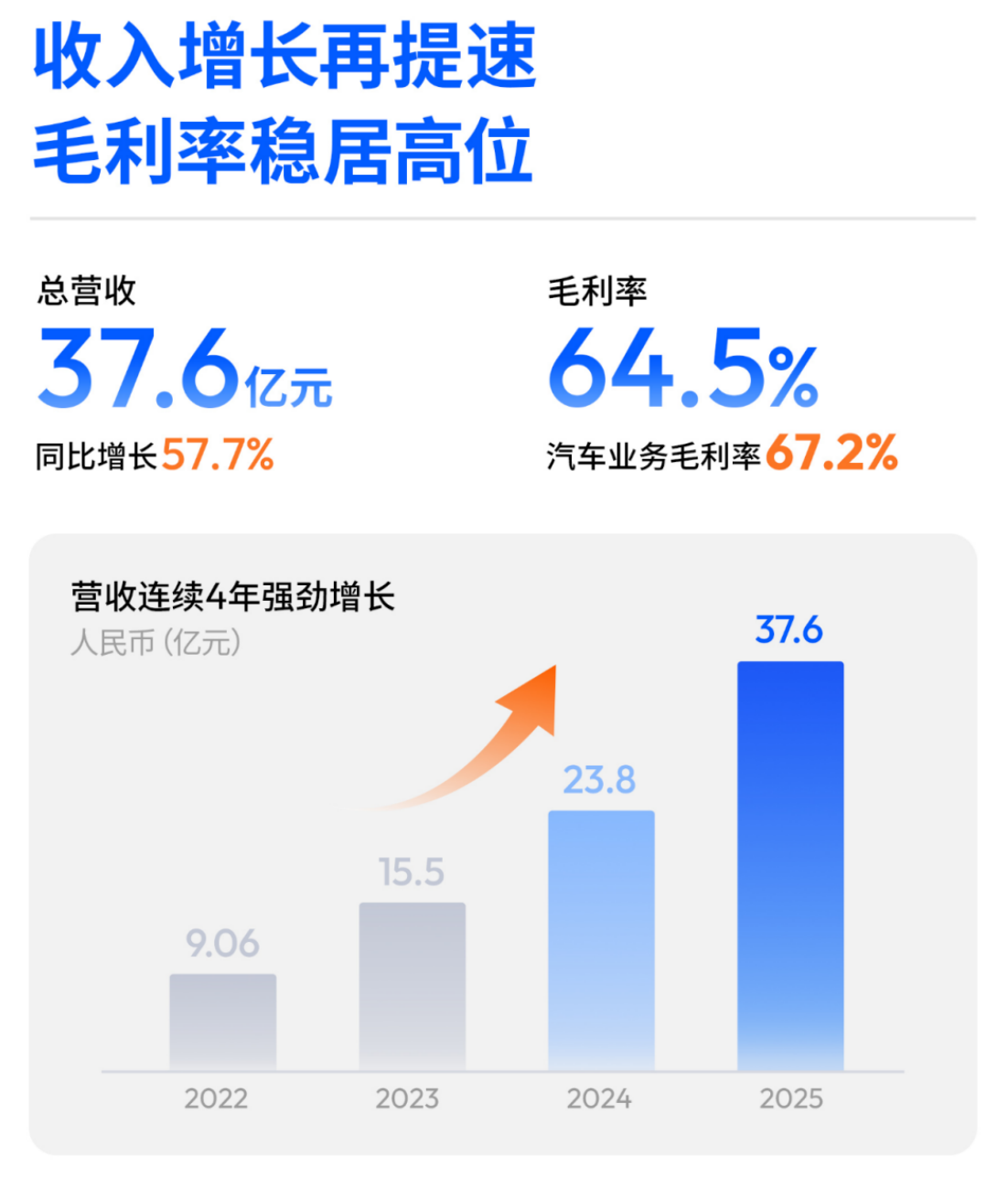 近日,地平线(股份代号:9660)公布了其2025年全年财务业绩。数据显示,公司全年营收达到37.58亿元,与上一年度的23.84亿元相比,实现了57.7%的显著增长。这一成绩反映出地平线在智能驾驶及相关领域的强劲发展势头。