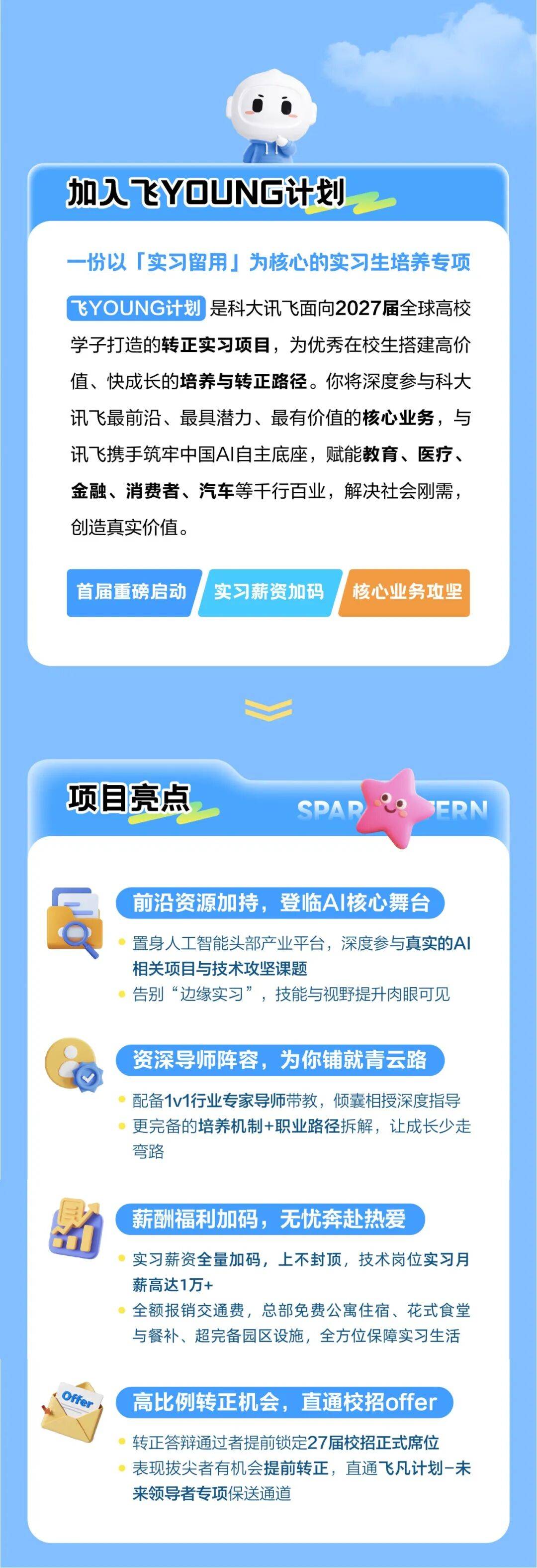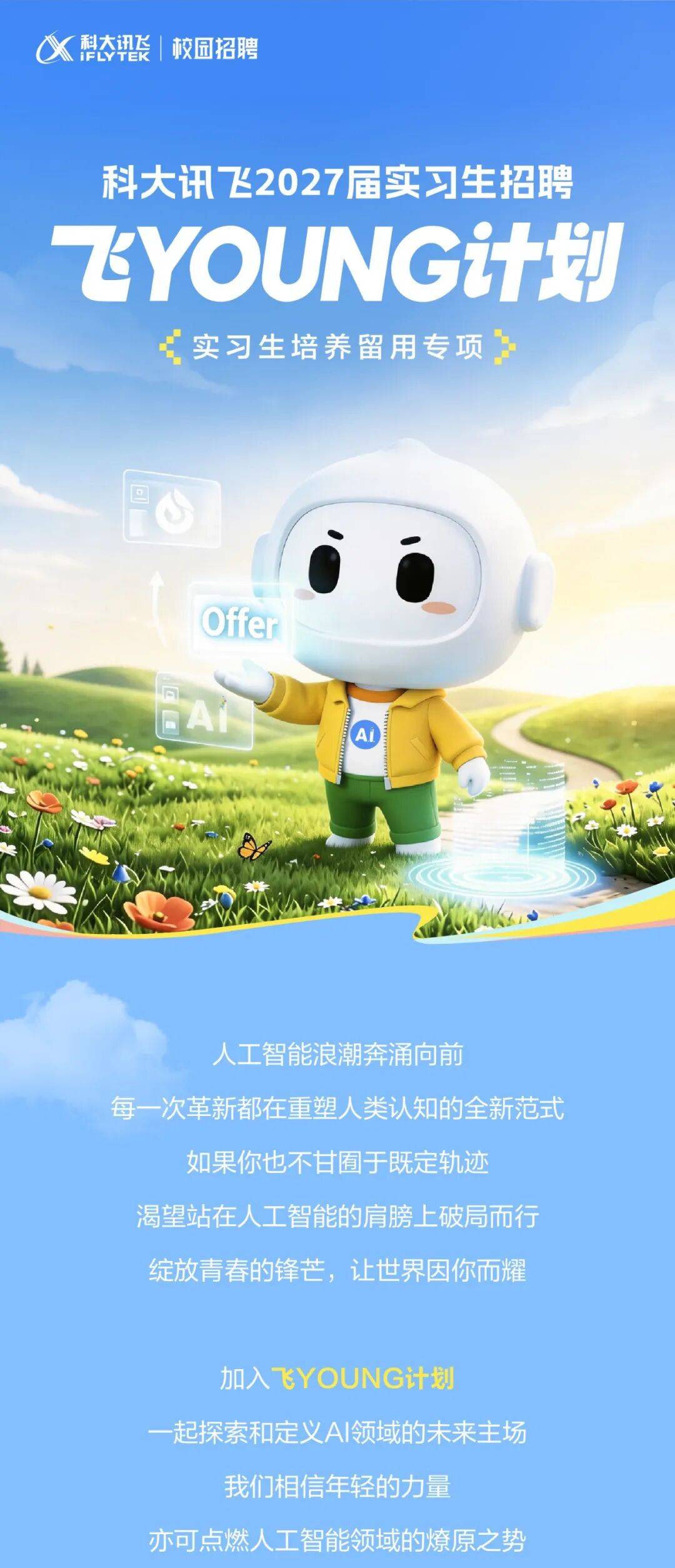 科大讯飞2027届「飞YOUNG」实习生计划开启,培养留用双通道等你来