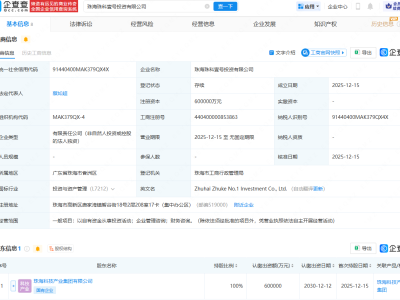 珠海科技产业集团成立投资公司,注册资本60亿元