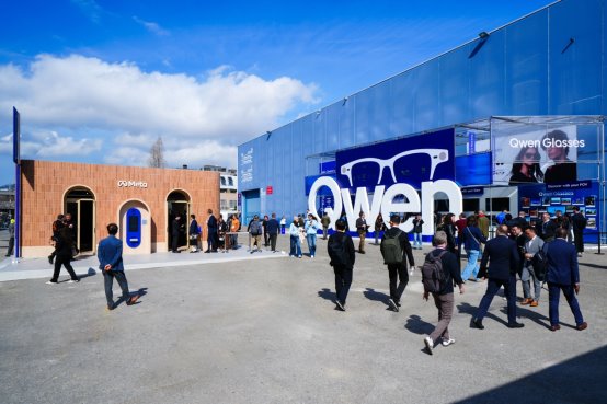 这是千问AI眼镜的全球首秀,作为阿里巴巴推出的最新AI硬件,加之现场高达5米醒目的“Qwen”标识,展台吸引大量海外观众排队体验。