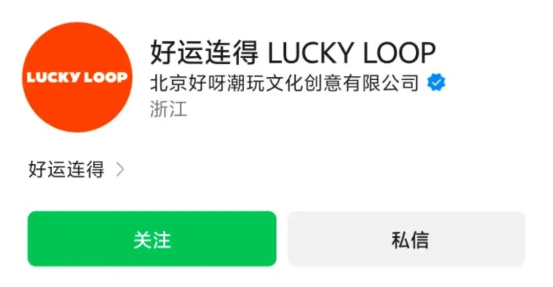 据了解,“好运连得 LUCKY LOOP”的官方微信公众号于今年1月完成注册认证,但尚未投入使用,账号主体为北京好呀潮玩文化创意有限公司。通过天眼查查询股权关系可知,北京好呀潮玩文化创意有限公司由中联盛世文化(北京)有限公司100%控股,而中联盛世文化(北京)有限公司是大麦娱乐(原阿里影业)的间接全资附属公司。这表明,“好运连得 LUCKY LOOP”是大麦娱乐亲自操盘的线下潮玩项目。