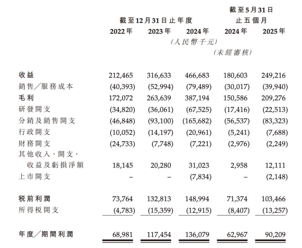 根据招股书披露的财务数据,海西新药在过去几年中保持了稳健的增长态势。2022年至2025年前五个月,公司营业收入分别为2.12亿元、3.16亿元、4.67亿元和2.49亿元;同期净利润分别为6898万元、1.17亿元、1.36亿元和9021万元。这一成绩表明,公司在医药市场中已占据一席之地。