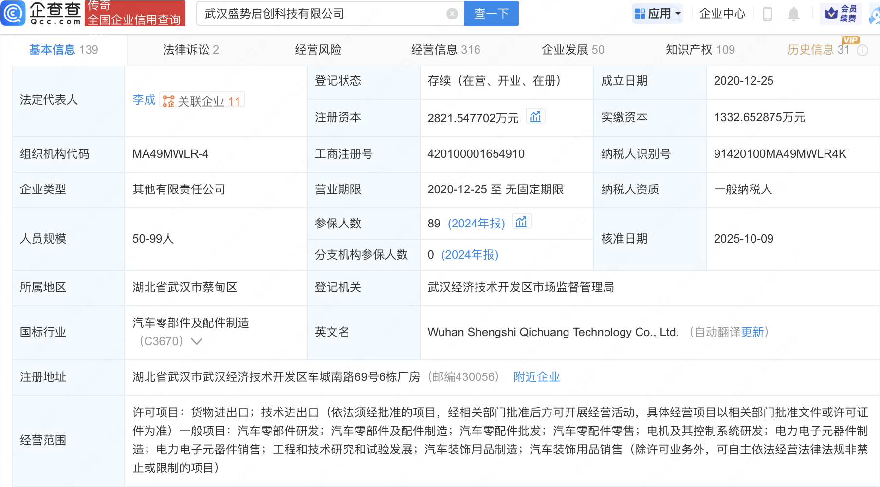 企查查APP显示,近日,武汉盛势启创科技有限公司发生工商变更,新增北京小米智造股权投资基金合伙企业(有限合伙)等为股东,同时注册资本增至2821.55万元。企查查信息显示,该公司成立于2020年,法定代表人为李成,经营范围包含:汽车零部件研发;汽车零部件及配件制造;汽车零配件批发;汽车零配件零售等。公开信息显示,盛势启创是一家汽车动力总成系统传感器研发商,专注于提供汽车动力总成系统传感器、智能执行器、智能座舱解决方案,集研发、生产、销售、服务于一体的汽车零部件科技公司。