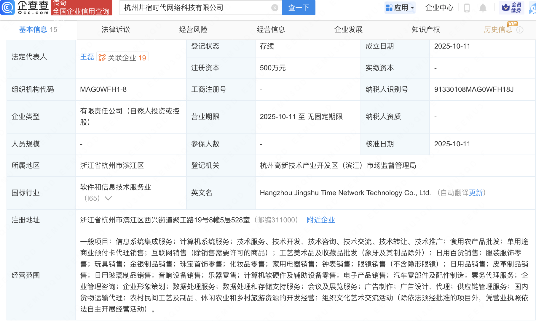 企查查APP显示,近日,杭州井宿时代网络科技有限公司成立,法定代表人为王磊,经营范围包含:供应链管理服务;国内货物运输代理;农村民间工艺及制品、休闲农业和乡村旅游资源的开发经营等。企查查股权穿透显示,该公司由科大讯飞(002230)全资子公司安徽讯飞云创科技有限公司等共同持股。