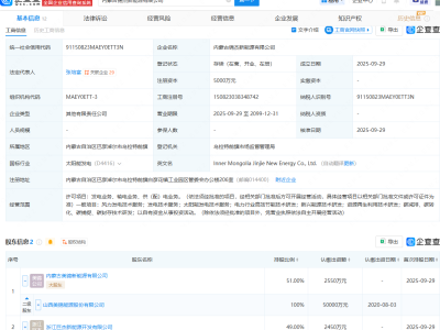 企查查APP显示,近日,吴忠市聚能科技有限公司发生工商变更,新增宁德时代(300750)为股东,同时注册资本增至2755.5万元。企查查信息显示,该公司成立于2022年,法定代表人为李桂玲,经营范围包含:光伏发电设备租赁;充电桩销售;充电控制设备租赁;电动汽车充电基础设施运营等。公开信息显示,该公司曾建设孙家滩100MW/400MWh共享储能电站项目。