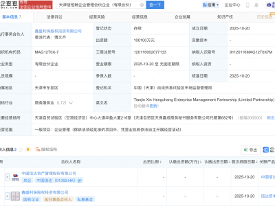 企查查APP显示,近日,深圳市川山通悦投资合伙企业(有限合伙)成立,经营范围包含:以自有资金从事投资活动;企业管理;企业管理咨询。企查查股权穿透显示,该企业由泸州老窖集团有限责任公司全资子公司四川金舵投资有限责任公司等共同出资。