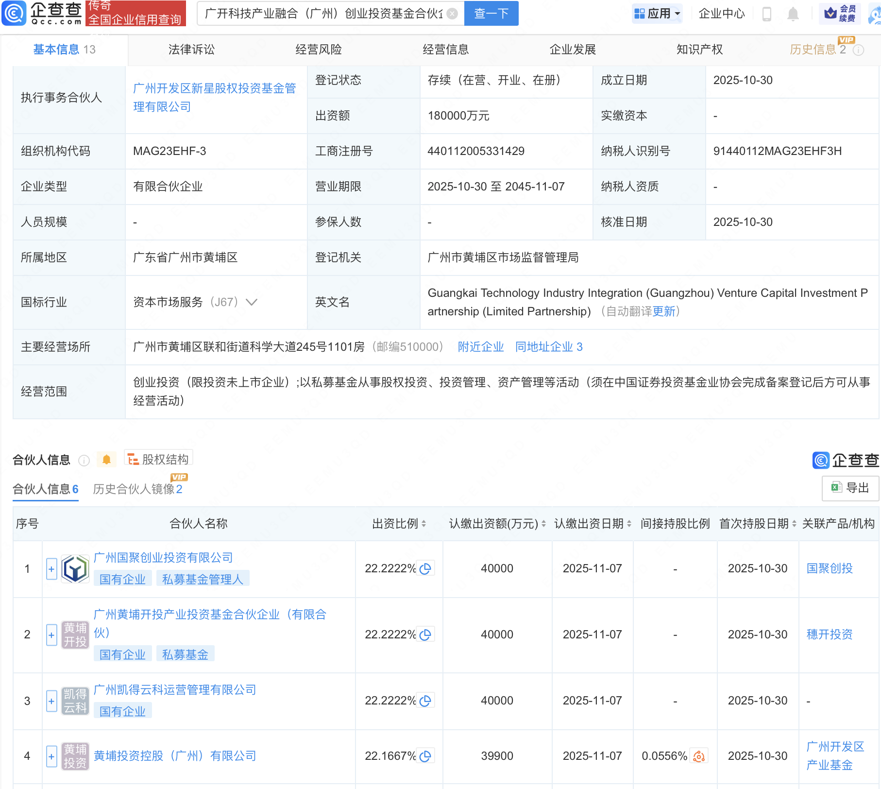 企查查APP显示,近日,广开科技产业融合(广州)创业投资基金合伙企业(有限合伙)成立,出资额18亿元,经营范围包含:创业投资(限投资未上市企业);以私募基金从事股权投资、投资管理、资产管理等活动。企查查股权穿透显示,该企业由广州国聚创业投资有限公司等共同出资。