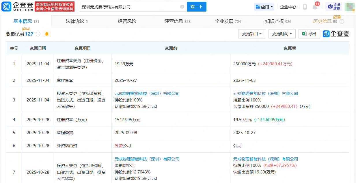 企查查APP显示,近日,深圳元戎启行科技有限公司发生工商变更,注册资本由19.59万人民币增至25亿人民币。企查查信息显示,该公司成立于2019年2月,法定代表人为周光,经营范围包括自动驾驶的技术开发、人工智能技术开发、计算机应用软件开发等,由元戎物理智能科技(深圳)有限公司全资持股。据悉,元戎启行是一家辅助驾驶系统研发商。