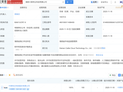 企查查APP显示,近日,新疆巨沃科技发展有限公司成立,法定代表人为沈有瑄,注册资本为1000万元,经营范围包含:智能控制系统集成;5G通信技术服务;物联网技术服务;物联网技术研发;人工智能通用应用系统等。企查查股权穿透显示,该公司由光云科技(688365)旗下深圳市巨沃科技有限公司、红齐畅行新能源科技发展(新疆)有限公司共同持股。