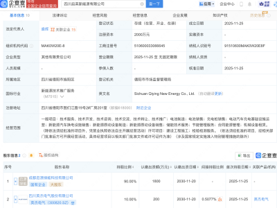 企查查APP显示,近日,自贡永福聚能储能技术有限公司成立,法定代表人为杨艳清,经营范围包含:储能技术服务;新兴能源技术研发;供应链管理服务;信息系统运行维护服务;合同能源管理等。企查查股权穿透显示,该公司由永福股份(300712)旗下四川永福聚能科技有限公司全资持股。