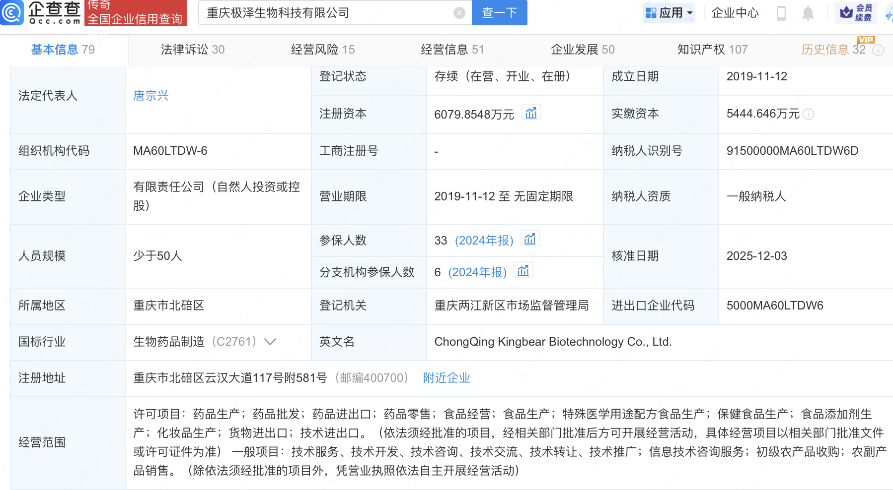 企查查APP显示,近日,重庆极泽生物科技有限公司发生工商变更,新增茅台(贵州)高质量成长股权投资合伙企业(有限合伙)等为股东,同时注册资本增至6079.85万元。企查查信息显示,该公司成立于2019年,经营范围包含:药品生产;药品批发;药品进出口;药品零售;食品经营等。