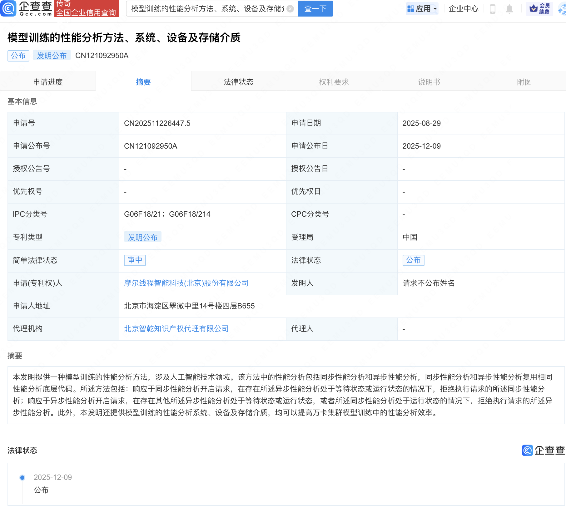 企查查APP显示,近日,摩尔线程(688795)“模型训练的性能分析方法、系统、设备及存储介质”专利公布。企查查专利摘要显示,本发明涉及人工智能技术领域,该方法中的性能分析包括同步性能分析和异步性能分析,同步性能分析和异步性能分析复用相同性能分析底层代码。此外,本发明还提供模型训练的性能分析系统、设备及存储介质,均可以提高万卡集群模型训练中的性能分析效率。