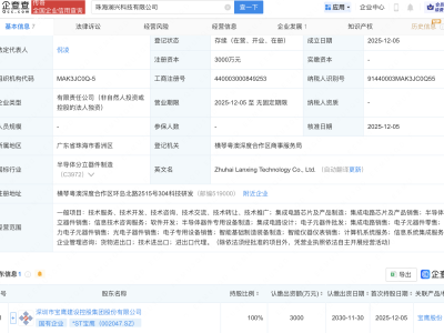 企查查APP显示,近日,晶晨半导体(珠海)有限公司成立,经营范围包含:半导体分立器件制造;半导体分立器件销售;半导体照明器件制造;集成电路设计;集成电路芯片设计及服务等。企查查股权穿透显示,该公司由晶晨股份(688099)全资持股。
