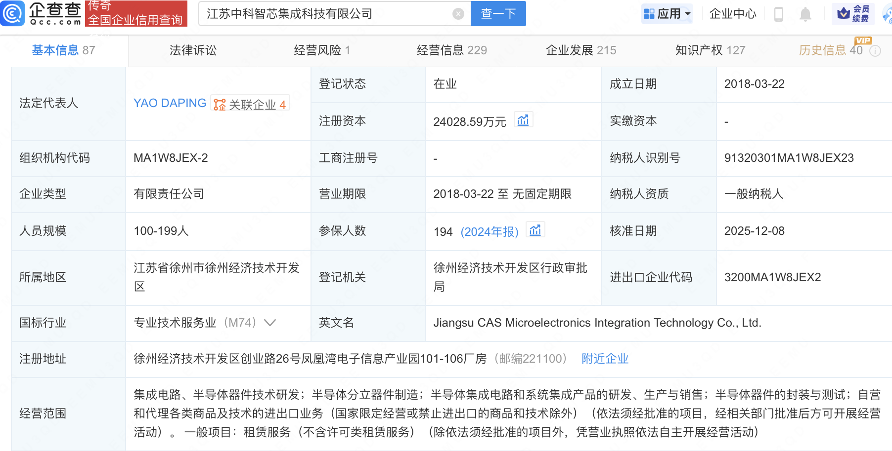 企查查APP显示,近日,江苏中科智芯集成科技有限公司发生工商变更,新增华懋科技(603306)为股东。企查查信息显示,该公司成立于2018年,经营范围包含:集成电路、半导体器件技术研发;半导体分立器件制造;半导体集成电路和系统集成产品的研发、生产与销售等。据其官网,中科智芯致力于集成电路封装及测试、设计、制造与技术服务。