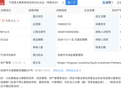 上汽集团、国泰海通等新设股权投资合伙企业,出资额10.9亿