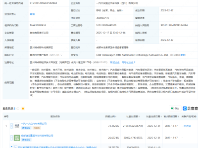 一汽大众、成都国资成立捷达品牌新公司,注册资本30亿