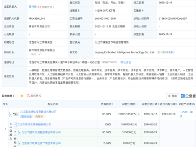 企查查APP显示,近日,江西众擎机器人有限公司成立,法定代表人为赵同阳,经营范围包含:工业机器人制造,智能机器人的研发,智能机器人销售,工业机器人销售,人工智能双创服务平台等。企查查股权穿透显示,该公司由深圳市众擎机器人科技有限公司全资持股。