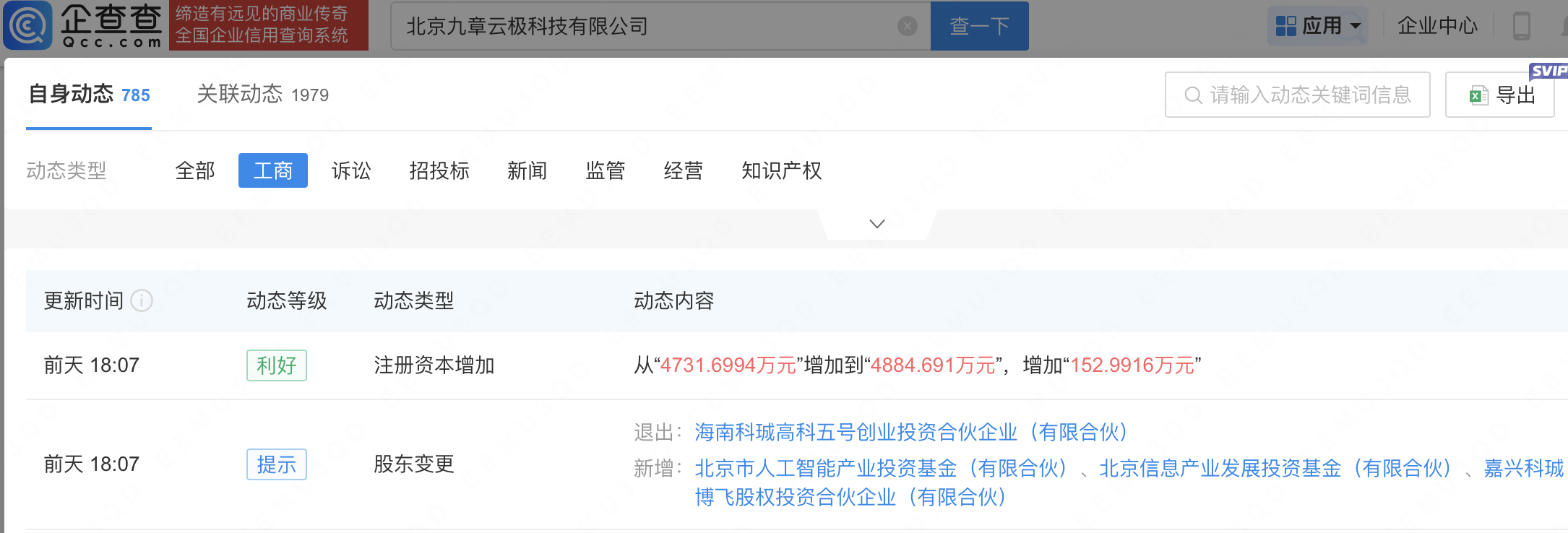 企查查APP显示,近日,北京九章云极科技有限公司发生工商变更,新增北京市人工智能产业投资基金(有限合伙)等为股东,同时注册资本增至4884.691万元。企查查信息显示,该公司成立于2013年,法定代表人为方磊,经营范围包含:计算机系统服务;计算机软硬件及辅助设备零售;通讯设备销售等。据其官网,九章云极是人工智能基础设施及智算云提供商。