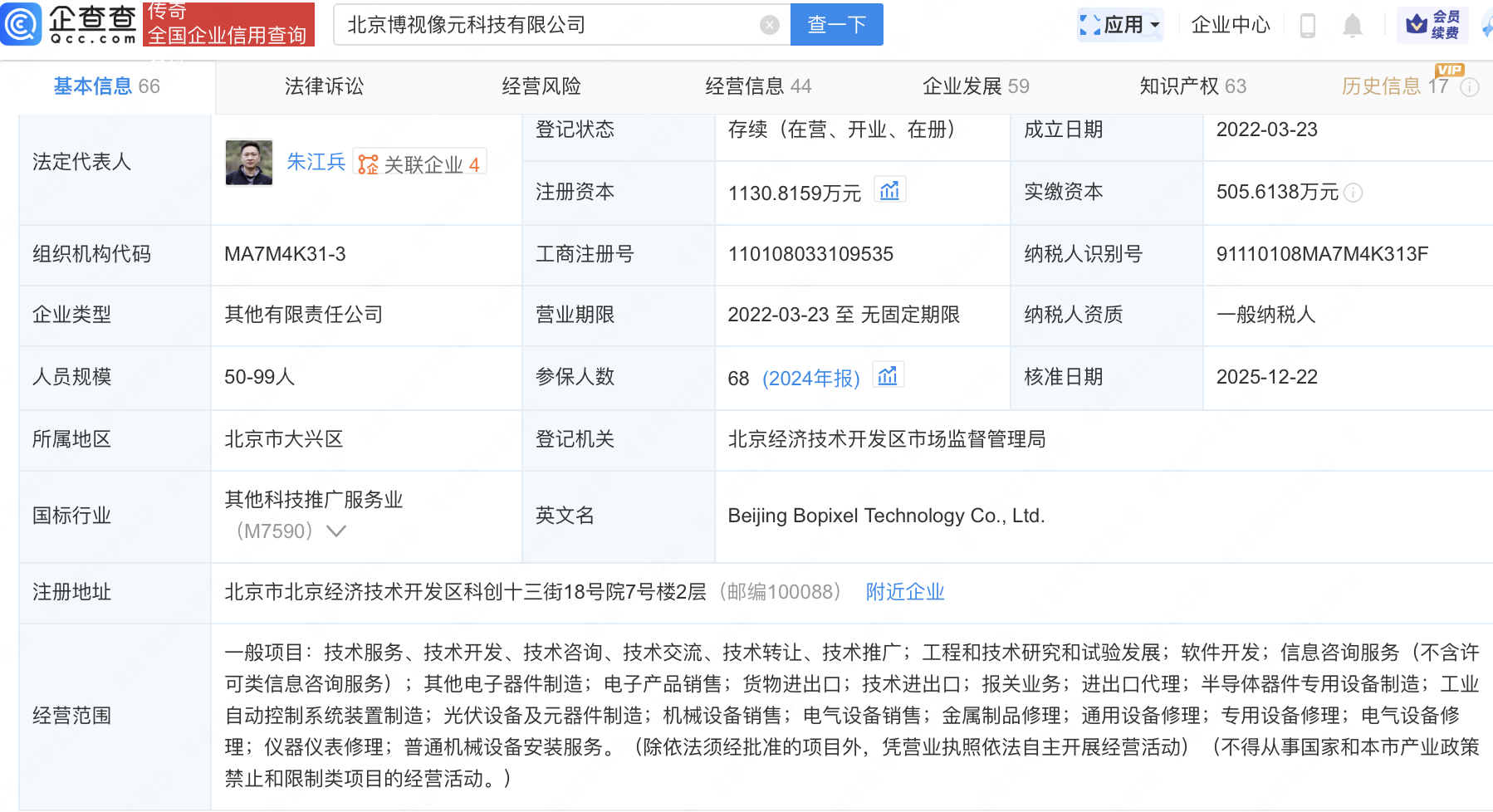 企查查APP显示,近日,北京博视像元科技有限公司发生工商变更,新增中国互联网投资基金(有限合伙)为股东,同时注册资本增至1130.82万元。企查查信息显示,该公司成立于2022年,法定代表人为朱江兵,经营范围包含:半导体器件专用设备制造;工业自动控制系统装置制造;光伏设备及元器件制造等。据其官网,博视像元是高性能机器视觉核心部件供应商。