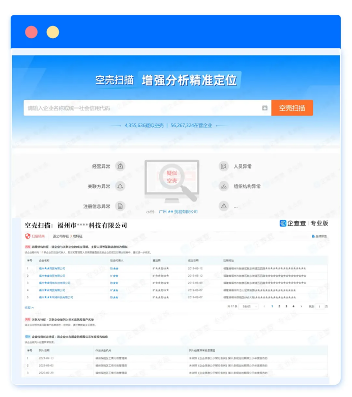 如今,空壳公司的伪装套路越来越隐蔽,但只要用对工具,就能提前识破它们的真面目。无论是企业合作、金融风控,还是日常的商业决策,用企查查【空壳扫描】多查一步,就能少踩一个坑,把风险挡在源头。