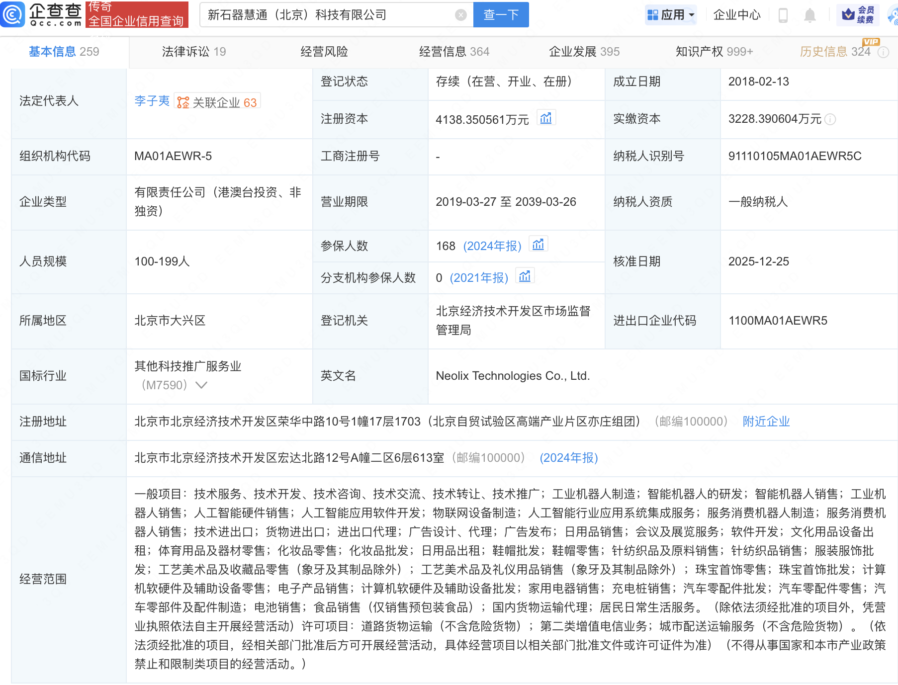企查查APP显示,近日,新石器慧通(北京)科技有限公司发生工商变更,新增滴滴智慧交通科技有限公司、Max Overseas Co.,Ltd.(迈克思国际有限公司)等为股东,同时注册资本增至4138.35万元,高管亦发生变更,新增外籍高管。企查查信息显示,该公司成立于2018年,法定代表人为李子夷,经营范围包含:人工智能应用软件开发;物联网设备制造;人工智能行业应用系统集成服务;服务消费机器人制造等。