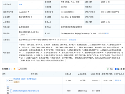 企查查APP显示,近日,一起发光(北京)文化有限公司成立,法定代表人为曹晓北,注册资本为2000万元,经营范围包含:组织文化艺术交流活动;电影摄制服务;摄像及视频制作服务;广播电视节目制作经营;电视剧发行等。企查查股权穿透显示,该公司由光线传媒(300251)全资子公司北京光线影业有限公司、深圳市熠起文化有限公司共同持股。
