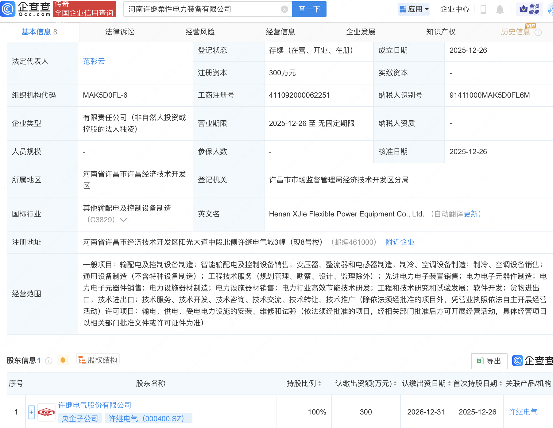 企查查APP显示,近日,河南许继柔性电力装备有限公司成立,经营范围包含:输配电及控制设备制造;智能输配电及控制设备销售;变压器、整流器和电感器制造;制冷、空调设备制造等。企查查股权穿透显示,该公司由许继电气(000400)全资持股。