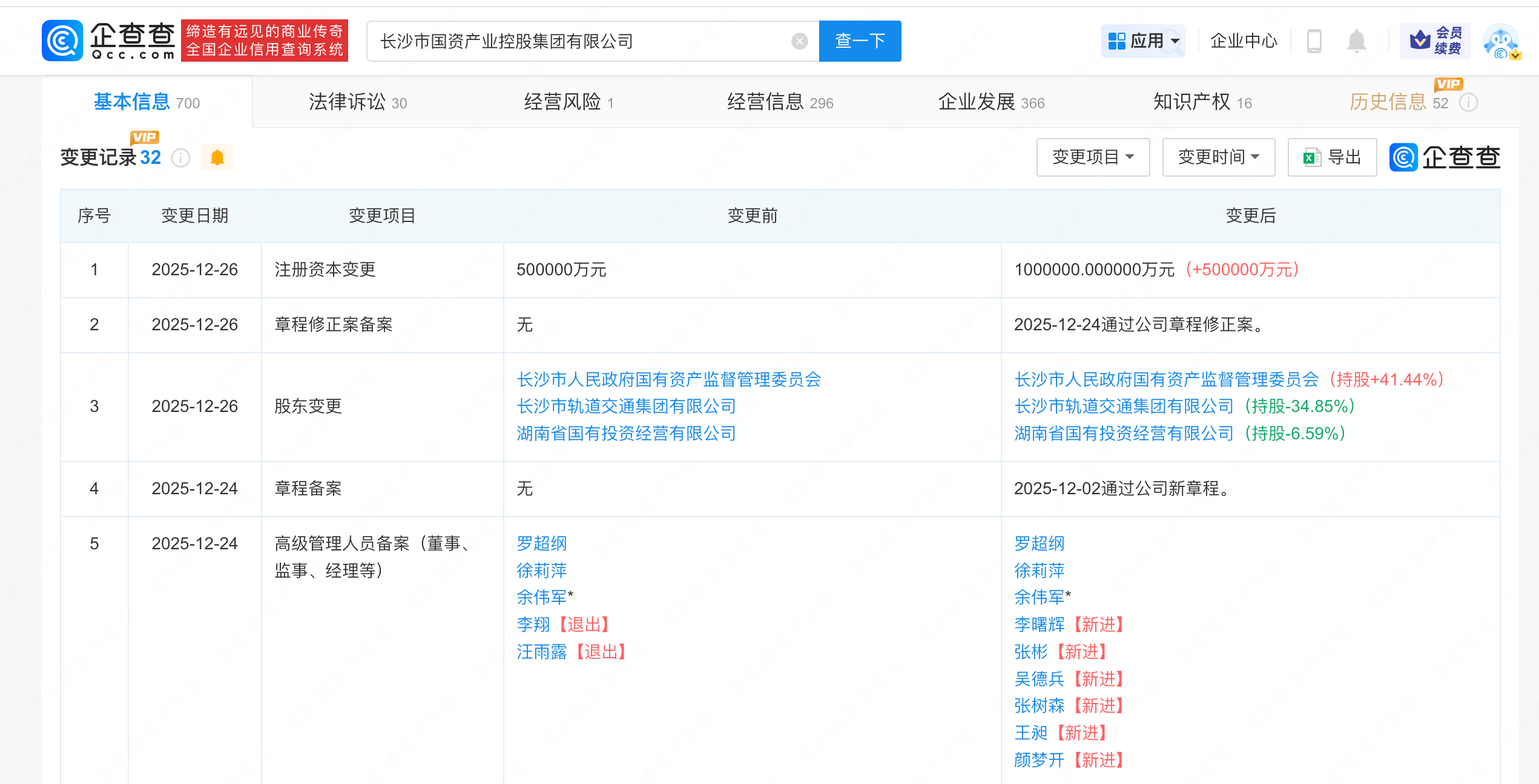 企查查APP显示,近日,长沙市国资产业控股集团有限公司发生工商变更,注册资本由50亿人民币增至100亿人民币,增幅100%。企查查信息显示,该公司成立于2016年6月,法定代表人为余伟军,经营范围为国有资产管理,实业投资、股权投资与产业并购整合,资产管理,物业管理,由长沙市人民政府国有资产监督管理委员会、长沙市轨道交通集团有限公司、湖南省国有投资经营有限公司共同持股。