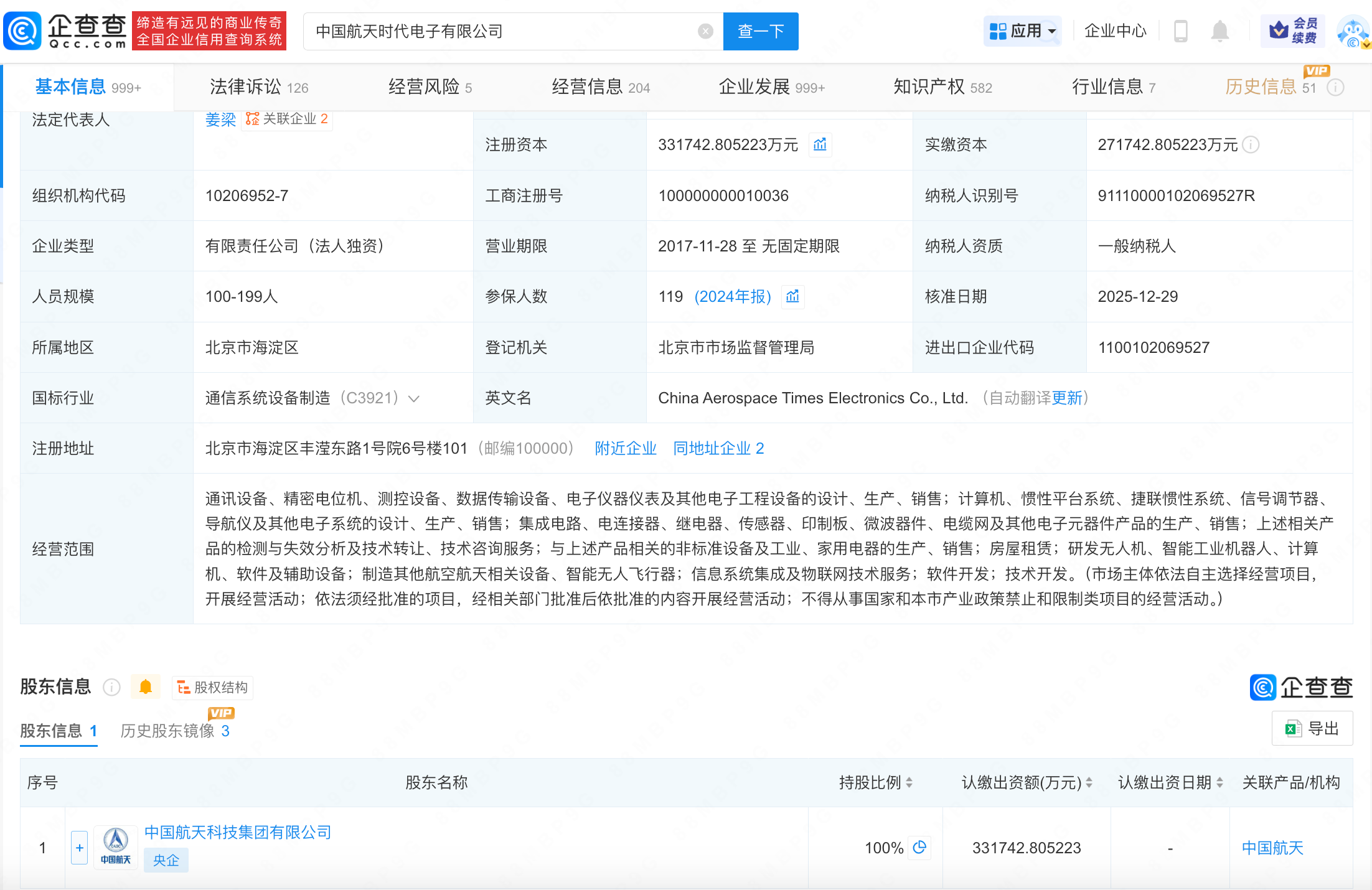 企查查APP显示,近日,中国航天时代电子有限公司发生工商变更,注册资本由约27.2亿人民币增至约33.2亿人民币,增幅约22%。企查查信息显示,该公司成立于1989年4月,法定代表人为姜梁,经营范围包括通讯设备、精密电位机、测控设备、数据传输设备、电子仪器仪表及其他电子工程设备的设计、生产、销售等,由中国航天科技集团有限公司全资持股。