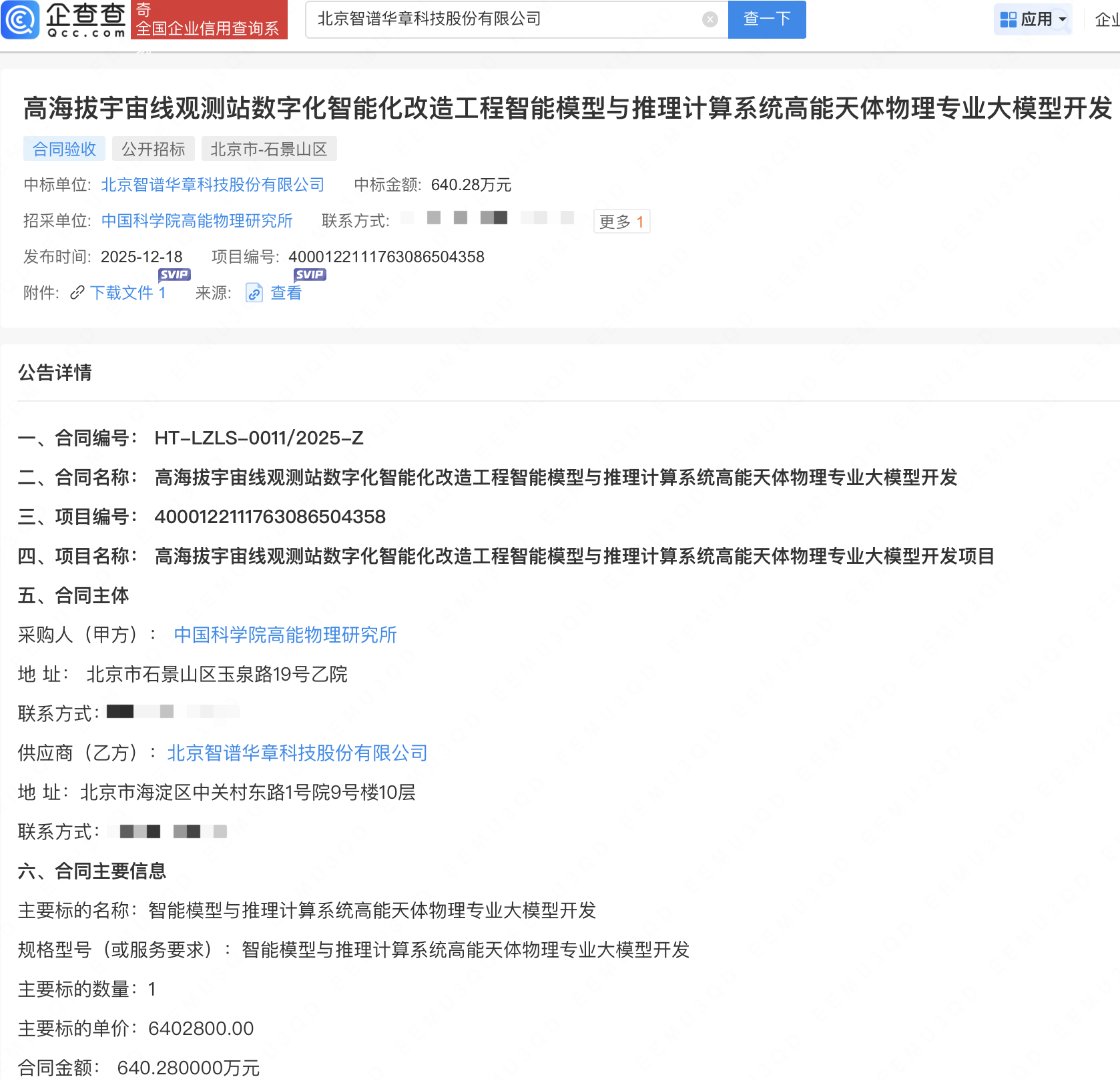 企查查APP显示,近日,智谱(02513.HK)中标中国科学院高能物理研究所“高海拔宇宙线观测站数字化智能化改造工程智能模型与推理计算系统高能天体物理专业大模型开发”项目,中标金额640.28万元。企查查显示,智谱成立于2019年,经营范围包含:人工智能基础软件开发;人工智能应用软件开发;软件开发等。