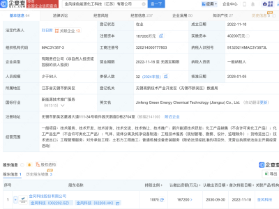企查查APP显示,近日,江苏天能工业电池有限公司成立,法定代表人为程卫兵,注册资本为1000万元,经营范围包含:电池制造;电池销售;电池零配件生产;电池零配件销售;汽车零部件研发;汽车零部件再制造等。企查查股权穿透显示,该公司由天能股份(688819)旗下浙江省长兴天能电源有限公司、天能新能源(湖州)有限公司共同持股。