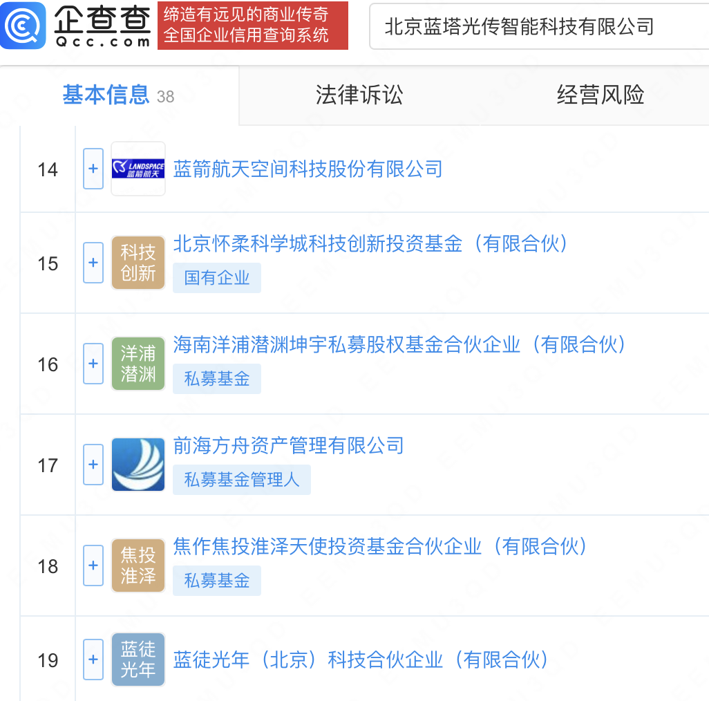 企查查显示,北京蓝塔光传智能科技有限公司成立于2025年4月,法定代表人及董事长为蓝箭航天创始人张昌武,由蓝箭航天空间科技股份有限公司等共同持股。