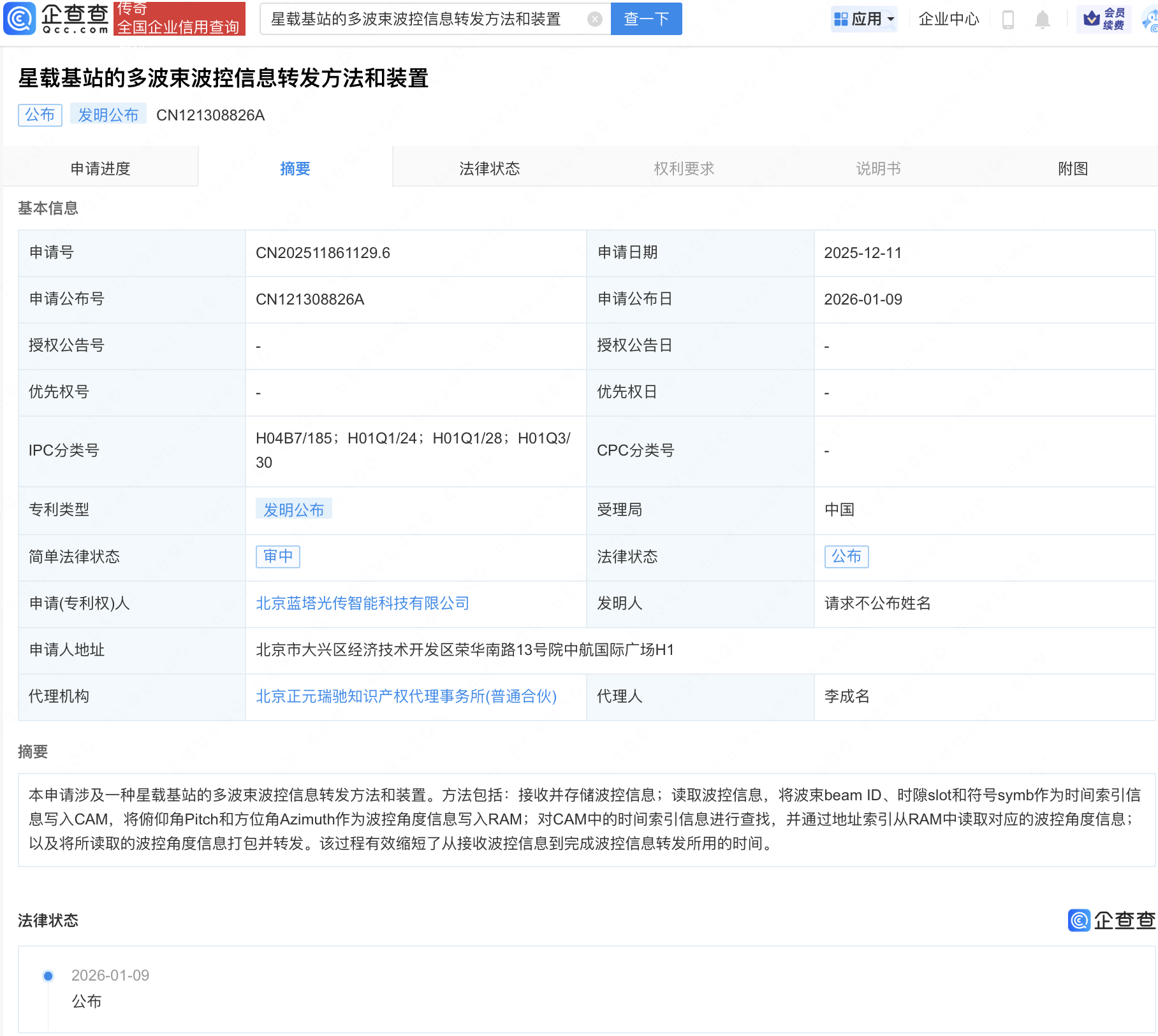 蓝箭航天参股子公司公开涉星载基站及太阳同步轨道专利