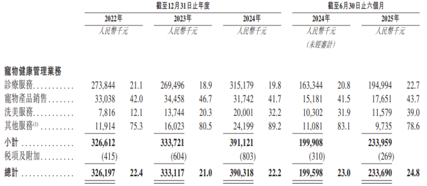 财务数据显示,2022年至2025年上半年,瑞派宠物医院持续经营业务收入分别为14.55亿元、15.85亿元、17.58亿元及9.43亿元,净利润分别为-0.62亿元、-2.51亿元、-0.59亿元及0.16亿元,经调整净利润分别为0.55亿元、-1.21亿元、0.7亿元及0.73亿元。报告期内,公司毛利率呈现波动趋势,分别为22.4%、21%、22.2%及24.8%。截至2025年12月15日,瑞派宠物医院旗下417家在营医院通过收购方式取得,占比达77.5%。