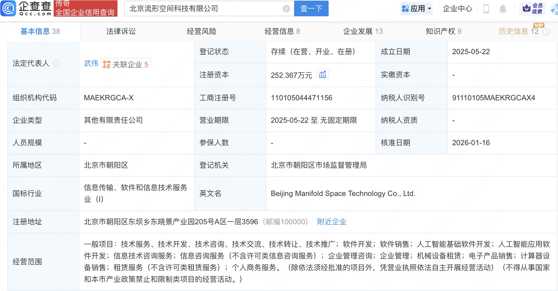 企查查APP显示,近日,北京流形空间科技有限公司发生工商变更,新增华为旗下深圳哈勃科技投资合伙企业(有限合伙)等为股东,同时,注册资本增至约252.4万人民币。企查查信息显示,该公司成立于2025年5月,法定代表人为武伟,经营范围含人工智能基础软件开发、人工智能应用软件开发、信息技术咨询服务等。公开信息显示,流形空间是一家聚焦世界模型与具身智能领域的公司。