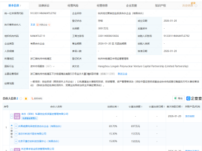 企查查APP显示,近日,天津海河曜仲股权投资合伙企业(有限合伙)成立,出资额6.13亿元,经营范围包含:以自有资金从事投资活动;投资管理。企查查股权穿透显示,该企业由法兰泰克(603966)、环旭电子(601231)等共同出资。