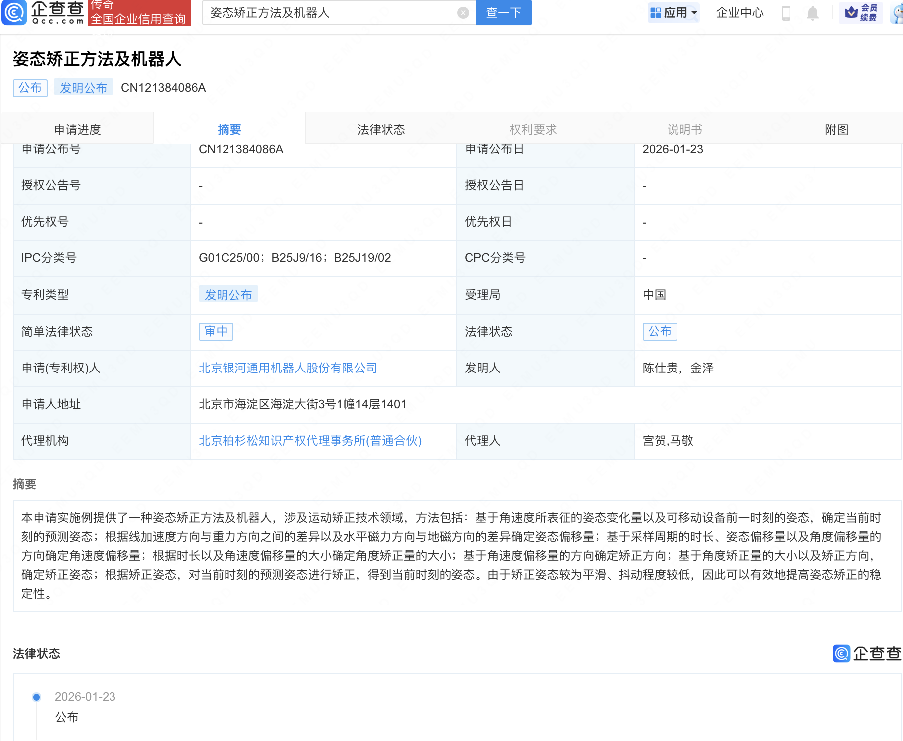 银河通用机器人新专利可有效提高姿态矫正稳定性